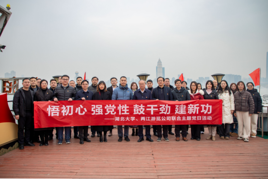 教工第一党支部联合武汉两江游览轮船旅游有限公司机关党支部,在武昌区临江大道月亮湾码头“汉阳门”号红色主题船共同举行“悟初心、强党性、鼓干劲、建新功”联合主题党日活动。