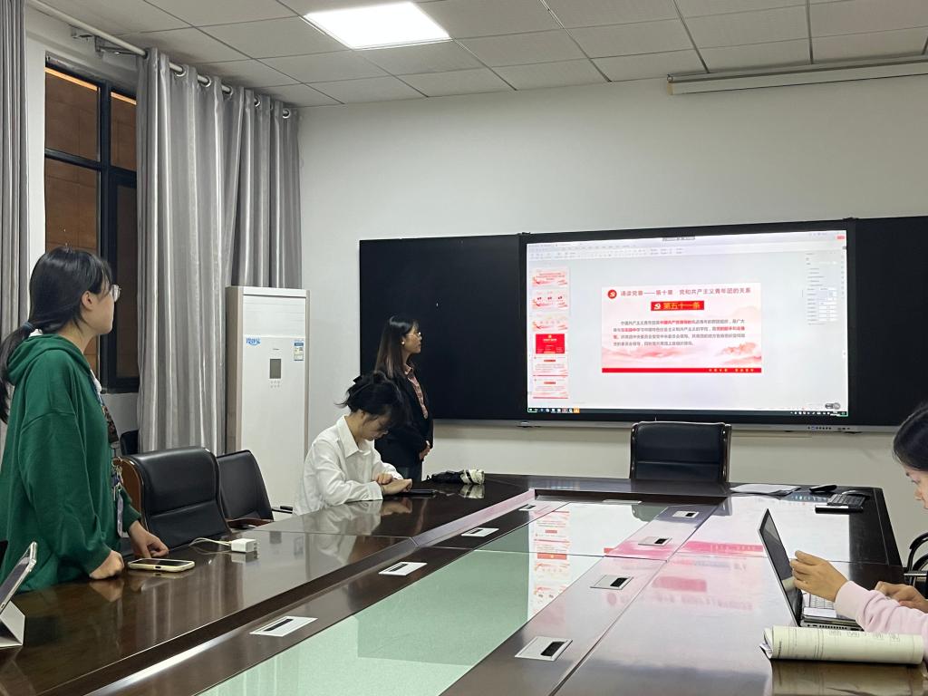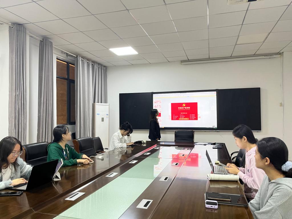 五楼会议室举行“学习习近平文化思想”主题党日活动。本科生党支部全体党员、预备党员参与学习,活动由支部书记雷小环同志主持。