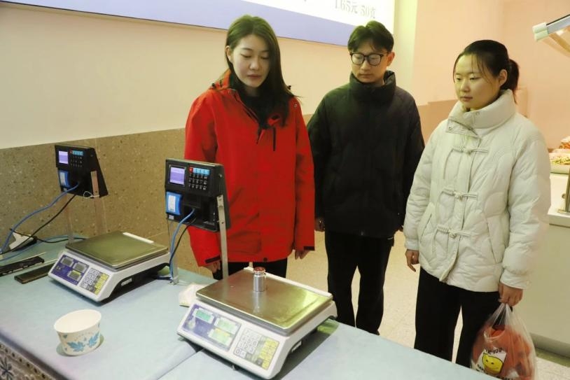 检测团队携带国家标准砝码,深入风华园食堂称重区、校园水果店等场所,展开全面检测活动现场同步设置互动体验区,师生通过放置标准砝码验证出,“500克砝码实测误差仅±3克”的精确结果。