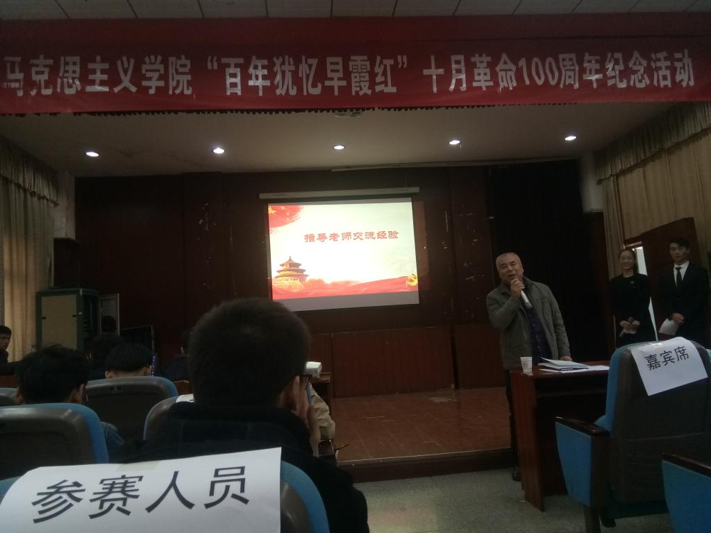 1125号下午,院纪念十月革命100周年演讲比赛暨第25期《理论学习通讯》发刊会模拟法庭举行。院党委书记汤德森、麻豆做爱 张锴老师胡银银老师以及院团委书记邹浩老师出席活动并担任评委