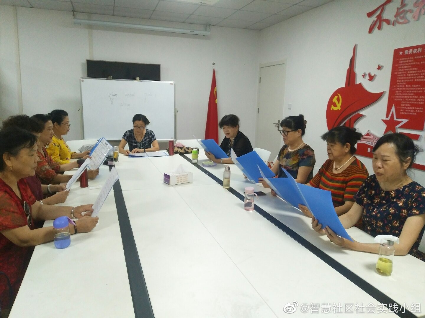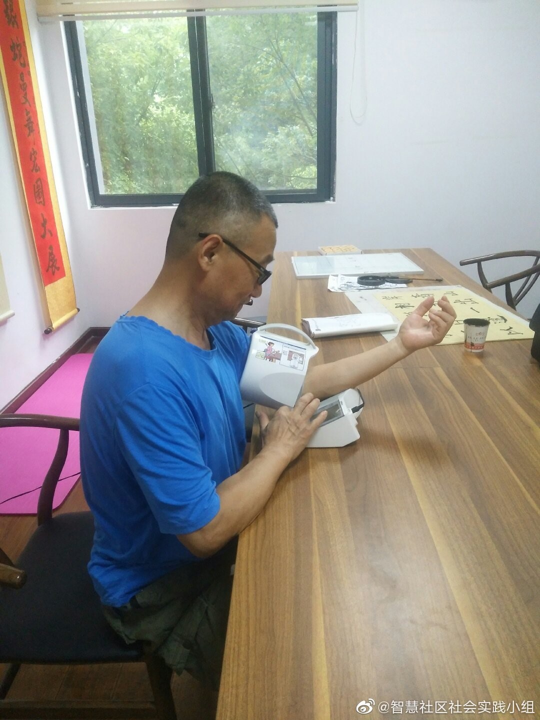 在主任的带领下,实践小组主要参观了二楼的老年活动中心。老年活动中心包括日间托老室、书法绘画室、图书阅览室、活动室、健康驿站、烘焙室和研判室。主任告诉我们,现如今国家拨款积极推动社区智能化建设,只有不断提高社区服务的质量,才能让居民生活更加幸福。在活动中心,正巧碰上由奶奶们组成的唱歌班在进行戏曲的排练。沟通后得知,社区老人的孩子们大多忙于事业,无暇抽出时间陪伴他们,社区给了他们良好的平台来结识朋友、提升自我和丰富生活。在唱歌房的隔壁,小组遇见了前来练习二胡的老爷爷,爷爷激动的告诉我们,社区建的好,他再也不会闲在家里没事做了。在活动中心,娱乐室和阅览室等会定点定时开放,并有专人进行打扫和管理;社区内甚至有专业的老师来教大家学习书法和烘焙。居委会将考虑修建社区食堂,希望进一步加强设施建设,为居民带来更直接和周到的便利。