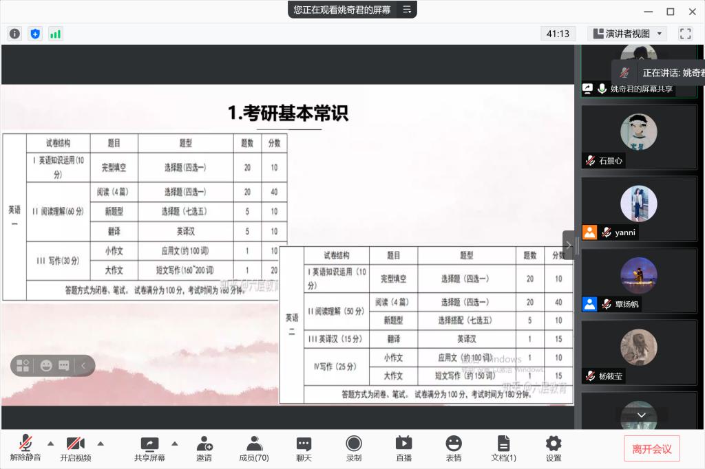 在艾斯卡尔和姚奇君学长分享结束后,2019级思政专业陈艺思、张好两位同学也结合自身情况就专业学习和考研等话题进行了讨论。