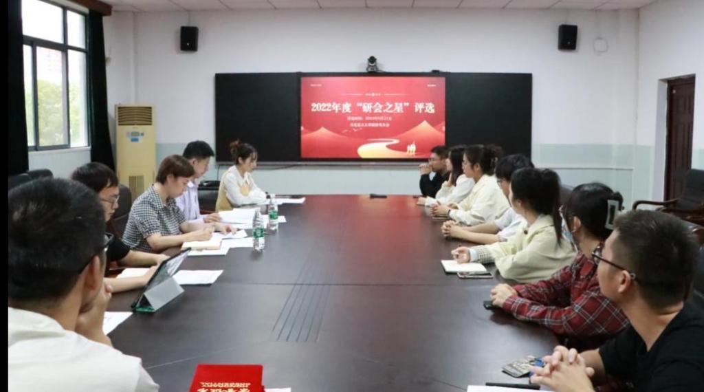 4楼2号会议室举行2022年度“研会之星”评选活动。麻豆做爱党委副书记晏妮、辅导员冷自衍,研会主席团出席并担任评审嘉宾。研究生会12名成员以线上线下相结合的方式参与评选,研究生会主席王琴主持此次活动。