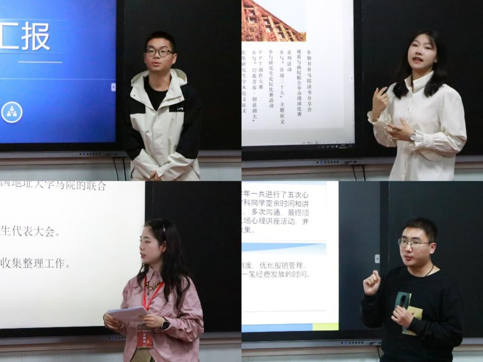 会议伊始,研究生会主席王琴介绍了本次评选的议程安排、评选办法,并宣读了评选的细则。据悉,本次“研会之星”评选活动经过前期个人报名汇总,共有五个部门共12名研究生会成员参与最终评选。