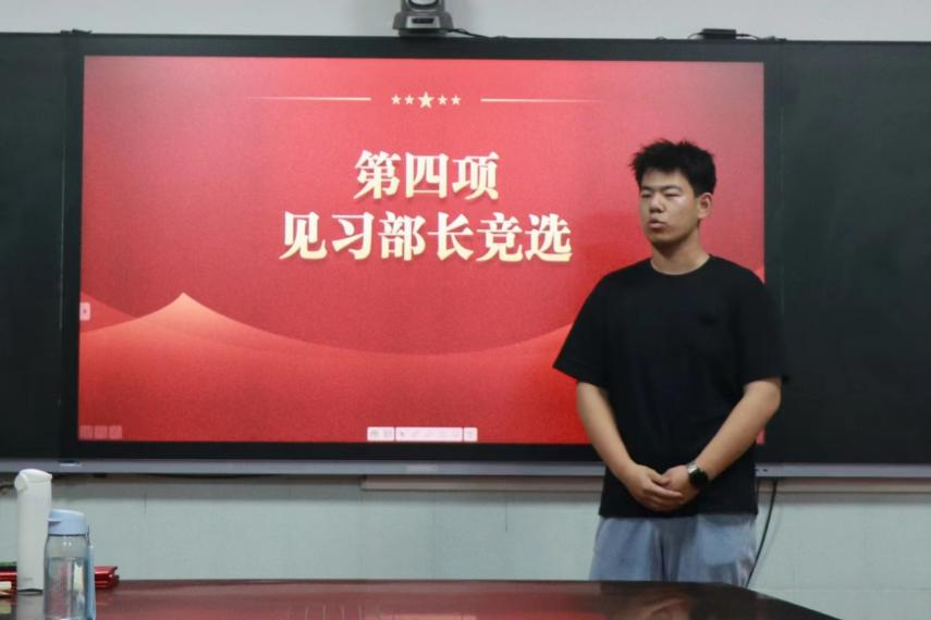 在见习部长竞选环节中,参与竞选的各部门成员向大家阐述了各自的基本情况、对工作岗位的认识、竞选原因以及工作设想。