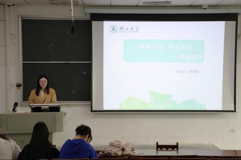 团委书记黎凤莲老师在三号教学楼401教室为大家开展以“健康生活,快乐生活——情绪管理”为题的心理健康讲座活动。麻豆做爱