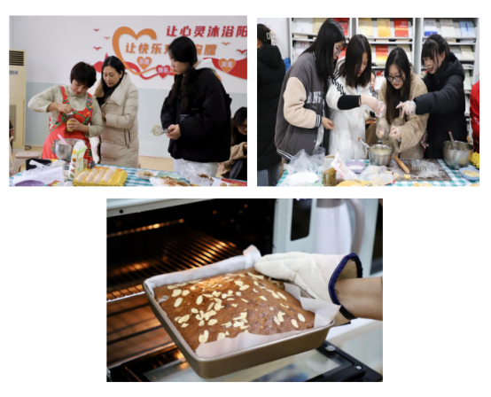沙龙活动以烘焙、美食分享和交流互动的形式进行。打鸡蛋,和面,制作奶茶……师生分工合作,有条不紊。在轻松愉快的氛围中,大家纷纷展示自己的烘焙技艺饼干、蛋糕一出炉,香气弥漫整间活动室,所有人蜂拥而上,争先品尝甜点,交流彼此的心得体会