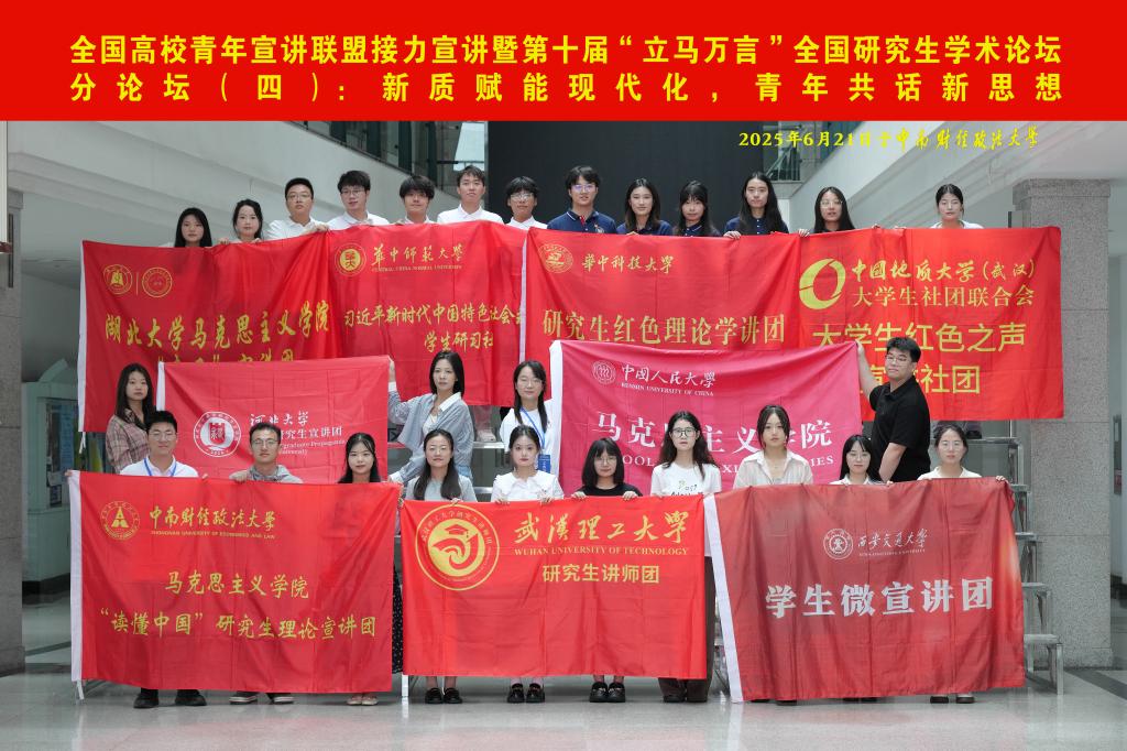 (文 / 王润东 )6月20日至21日,由全国高校青年宣讲联盟发起、中南财经政法大学主办的“读懂中国·理响南湖”——全国高校青年接力宣讲暨第十届“立马万言”全国研究生学术论坛第四分论坛在武汉举行。此次论坛汇聚了来自中国人民大学、浙江大学、西安交通大学、湖南大学、武汉大学、麻豆做爱 等全国15所高校学生理论宣讲团,麻豆做爱青马宣讲团作为代表受邀参加此次会议。