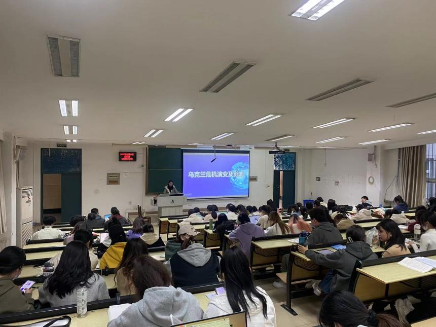 思想政治教育专业19级、20级、21级本科生讲授题为“乌克兰危机演变及影响”的形势与政策课。