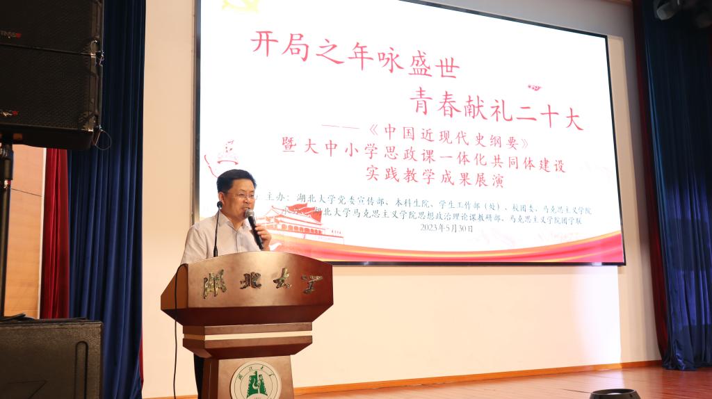党委副书记祝欣致辞。他强调,本次实践教学成果展演活动积极响应习近平总书记在中共中央政治局第五次集体学习时的号召,坚持改革创新,推进大中小学思想政治教育一体化建设,提高思政课的针对性和吸引力,引导广大青年学生厚植爱国主义情感,推进麻豆做爱