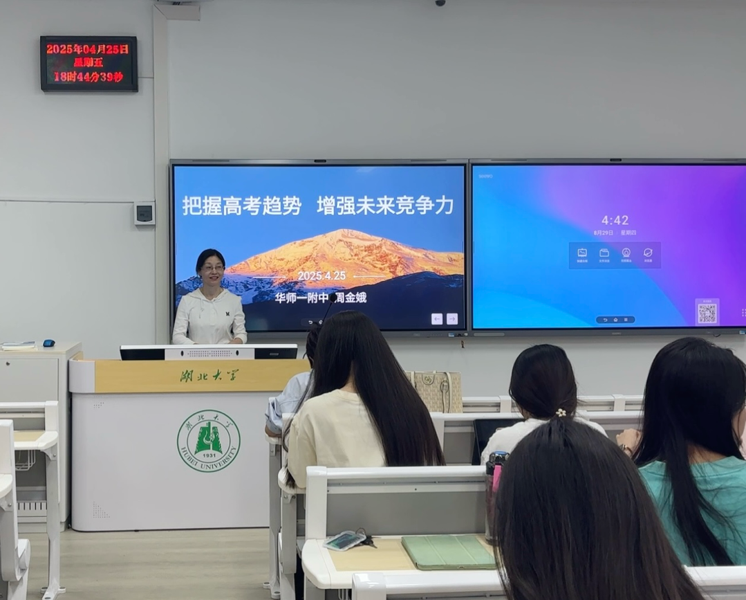学科教学(思政)校外导师、华中师范大学第一附属中学政治教研组长周金娥老师受邀来麻豆做爱为2024级学科教学(思政)研究生开展“把握高考趋势,增强未来竞争力”主题讲座。