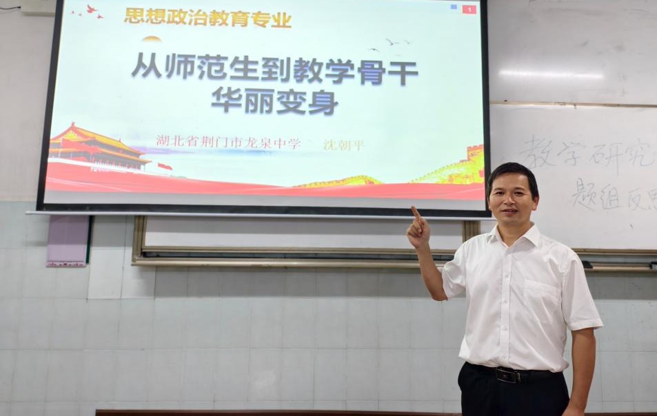 (通讯员/毛心甜、冯瑗)9月17日,麻豆做爱2023级本科生优秀教师成长专题课程,特邀湖北省荆门市龙泉中学高级教师、麻豆做爱思想政治教育专业1998级校友沈朝平老师,开展题为“从师范生到教学骨干华丽转身”的讲座,由政教系主任胡银银主持,2023级政教系全体学生参与。