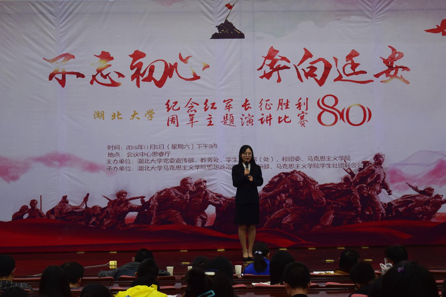 学生社团联合会具体承办。参加本次演讲比赛的选手来自全校2015级《毛泽东思想和中国特色社会主义理论体系概论》课堂的同学,旨在丰富广大学生的长征知识,引领学子们缅怀先烈,铭记历史,努力承担起“实现国家富强、民族振兴、人民幸福”的新长征的历史责任和伟大使命。决赛获奖选手将于明年暑期奔赴延安开展实践学习活动。