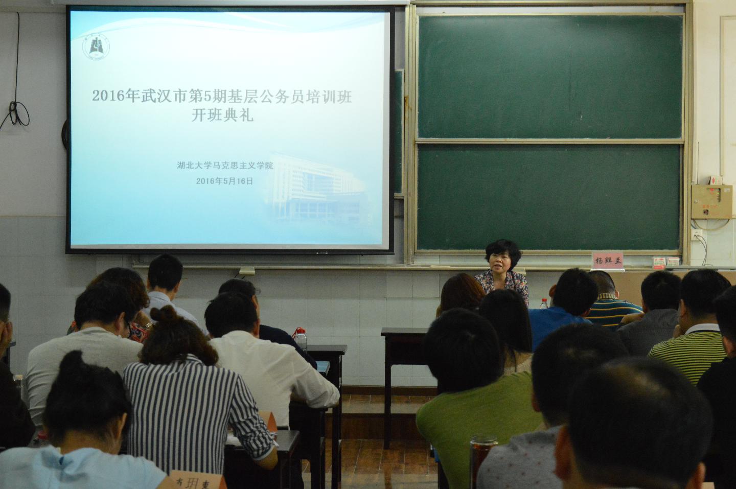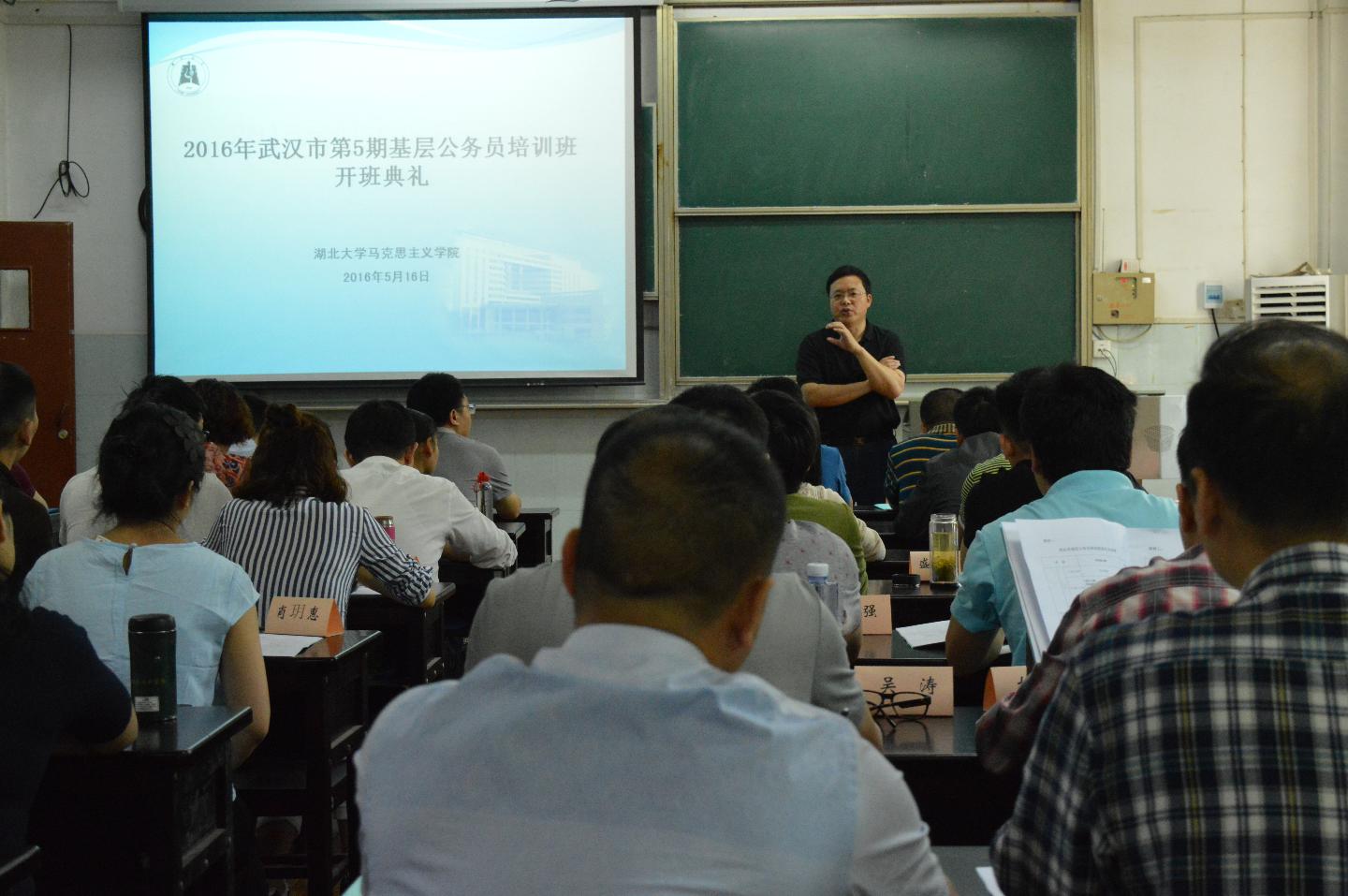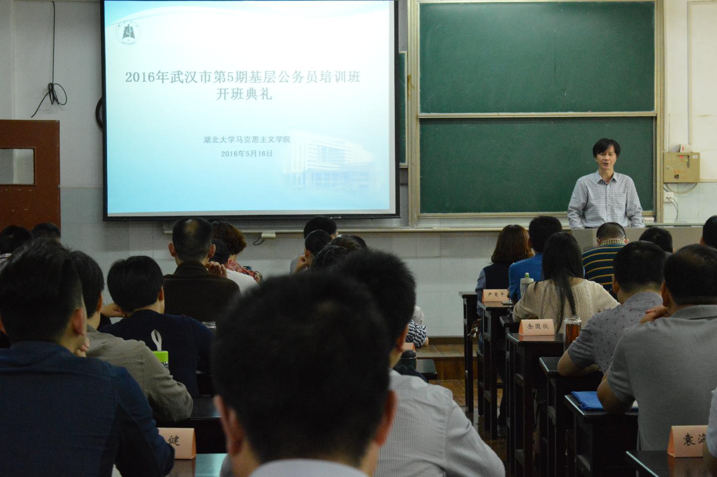 联合举办的武汉市第5期基层公务员培训班开班典礼暨首场报告在学校教二210教室举行。武汉市公务员局干部教育处副处长万达中,麻豆做爱