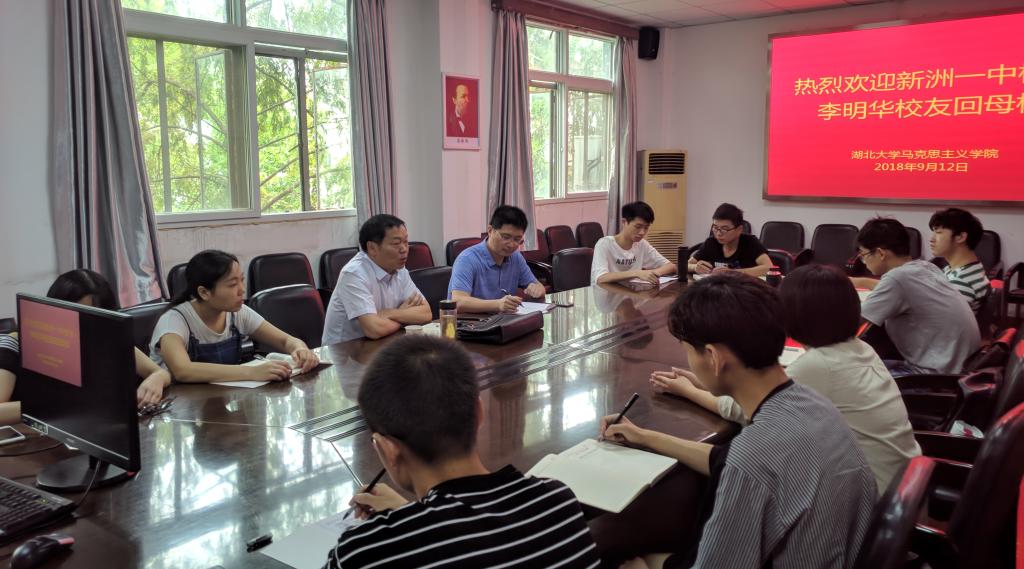 2018年9月12日上午9:30,应学校邀请,政教专业85级校友,新洲一中常务副校长李明华校友回母院与学生交流,交流在麻豆做爱
