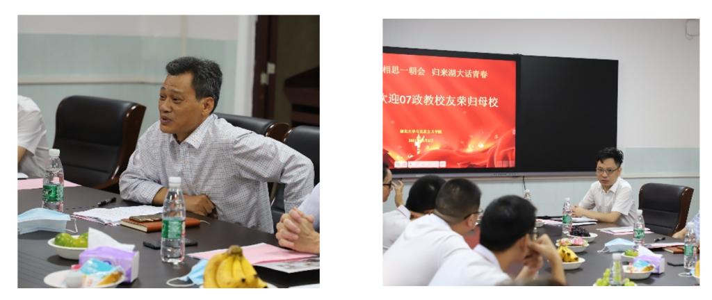 领导和老师当年对他的教导仍记忆犹新,政教专业的学习让他的思想一步步觉醒,为他之后的学习工作给予了很多帮助;在赤壁中担任高三政治老师的张冬同学分享了作为一名中学政治教师的感受,并表明了思政教育对学生成长的重要性。三个小时的座谈会,大家畅所欲言,欢声笑语不断,或聆听老师教诲,或分享工作经验,或谈谈生活感悟,在这里,大家依然是团结奋进积极向上的07政教一家人。