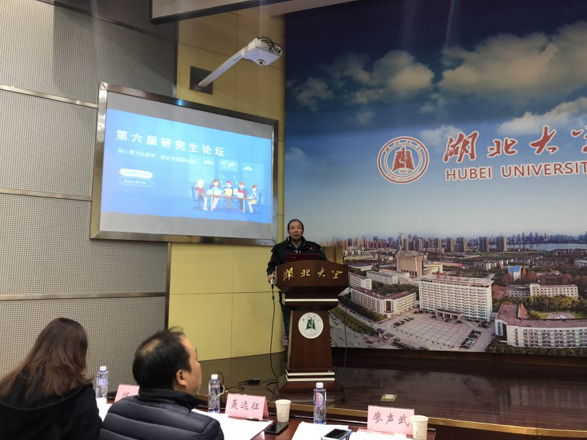 院长廖声武教授在致辞中指出,这是两院第三次共同举办学术论坛,大家相互交流与学习,共同进步。研究生学术论坛对于研究生来说是一个很好的平台,让大家有一个很好的锻炼机会。同时廖声武院长对同学们提出了三点希望:希望同学们能充分利用论坛的平台展示出自身的研究成果,同时能够学以致用,多关注社会现象,研究社会问题;希望同学们能增强学习的自觉性,多阅读勤思考,开阔自身的视野,做好理论知识储备;希望同学们从学术论坛中受到启发,加强学习,提高自己的写作和研究水平,提升专业素养。