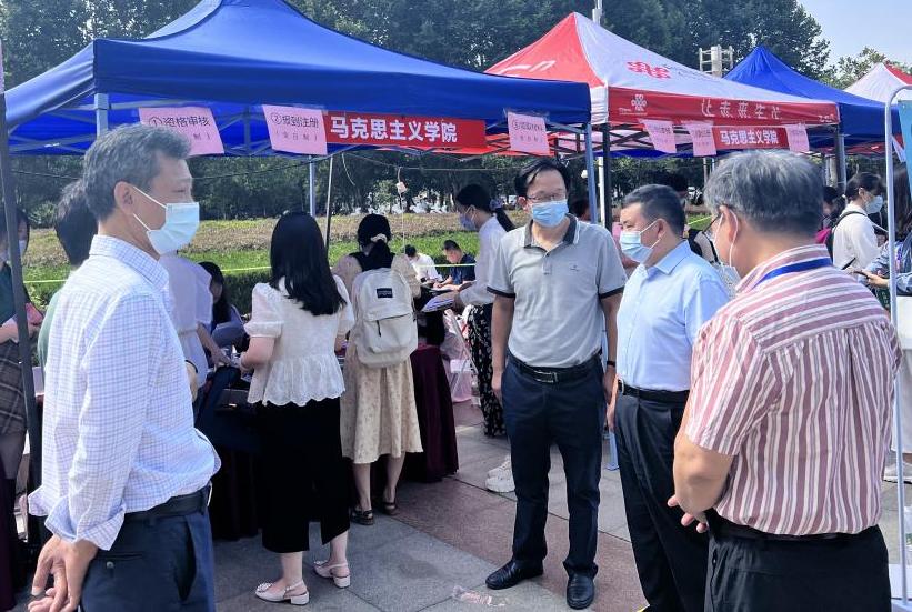 迎新接待站,看望新同学,慰问迎新工作人员,鼓励新同学不负韶华,不负时代,在湖大学有所获,学有所成,嘱咐迎新工作人员注意个人防护与安全。