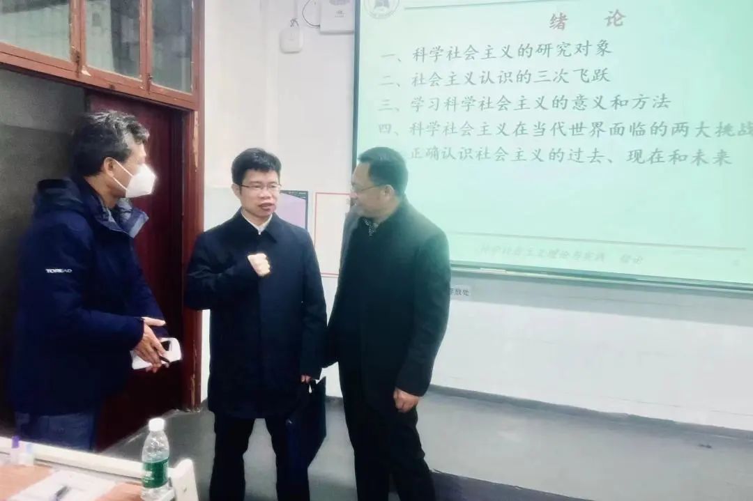 2023年2月6日,学校领导走进麻豆做爱思政课堂,与师生们同上开学第一节思政课,校领导们在课堂上认真听课、仔细记录、深入检查、调研和指导新学期思政课教学工作。