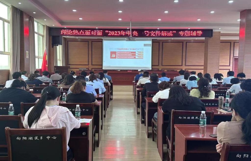 龚梦副教授以《2023年中央一号文件解读》为题,从2023年中央一号文件出台的重要意义、今年“三农”工作重点、“抓好粮食和重要农产品稳产保供”等九方面对中央一号文件的丰富内涵和重点部署进行宣讲和解析,并结合向阳湖镇实际工作进行深度剖析。