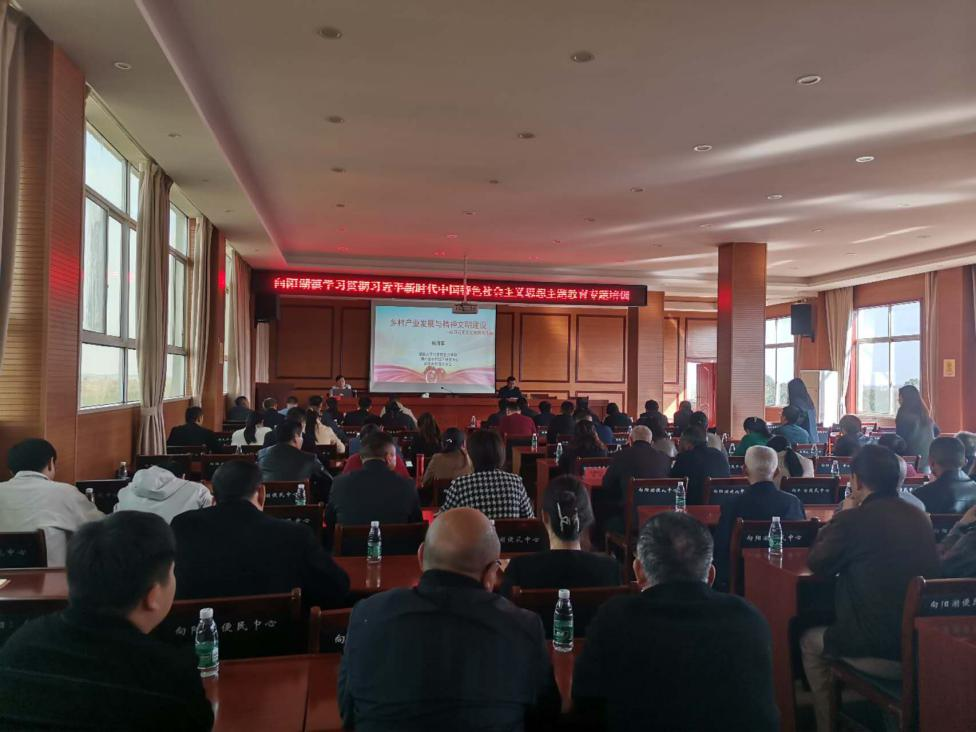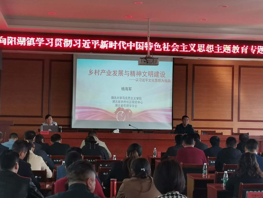 杨海军老师受邀做了“乡村产业发展与精神文明建设”主题宣讲。会议主会场设在向阳湖镇便民服务大厅四楼会议室,各村会议室、宝塔社区会议室设分会场,全体镇干部、村(社区)两委干部、国土所、林业站负责人、各村(社区)党员参加了宣讲报告会。报告会由向阳湖镇党委书记陈伟同志主持。