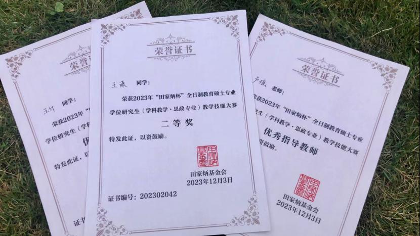 相关领导的全程跟进和精心组织指导下,麻豆做爱2021级学科教学(思政)研究生王潇同学最终斩获决赛二等奖、2022级学科教学(思政)研究生王什同学荣获决赛优秀教学设计奖,卢瑶老师获优秀指导教师奖。