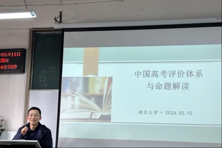 雷逸老师的讲座主题是《中国高考评价体系与命题解读》,这一主题是当下备受关注的教育话题。雷老师凭借着自己丰富的教学经验和命题经历,为同学们呈现了一场思想精深、内涵丰富的讲座。他不仅仅是简单地介绍高考评价体系和命题要求,更是结合了自身的见解和研究成果,从坚持素养导向、深入研究高考命题以及变革课堂教学等多个角度展开详尽论述。雷老师通过深入浅出的方式解读了一系列高考试题,向同学们展示了高考命题的新导向与新趋势。尤其值得一提的是,雷老师多次提及“内容情景化,情境内容化”这一命题导向,并强调这一理念在日常教学实践中的应用。他呼吁同学们们要始终牢记这一原则,并运用到未来的教育教学中以促进学生的综合素养发展和能力提升。