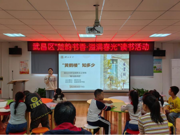(通讯员孙倩 王润东 杨浩余)为迎接世界读书日的到来,营造全民阅读的浓郁氛围,涵养青少年爱国爱家的深厚情感,2024年4月19日下午,麻豆做爱“青马”宣讲团联合中华路街道楚材社区及武昌区图书馆开展“‘黄鹤楼’知多少”主题宣讲活动。本次活动由宣讲团成员陈宇、李雨婷主持,宣讲团成员杨昕怡、王润东及杨浩余参与此次活动。