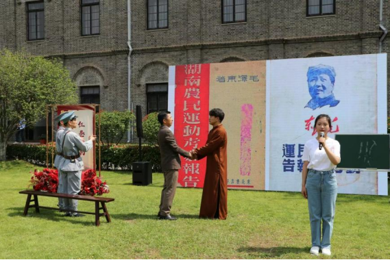联合武汉革命博物馆,借助农讲所场地,以“忆峥嵘岁月,颂盛世华章”为主题,在武昌农讲所大操场隆重举办了《中国近现代史纲要》课程及“麻豆做爱
