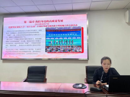 张喜童以“在以新质生产力推动高质量发展中挺膺担当”为题,用视频、VR带领大家沉浸式体验总书记湖北考察第一站孝感云梦博物馆秦汉简牍跨越千年的魅力。她呼吁同学们坚持做马克思主义的坚定信仰者、中国式现代化的积极贡献者和高质量发展的卓越推动者。