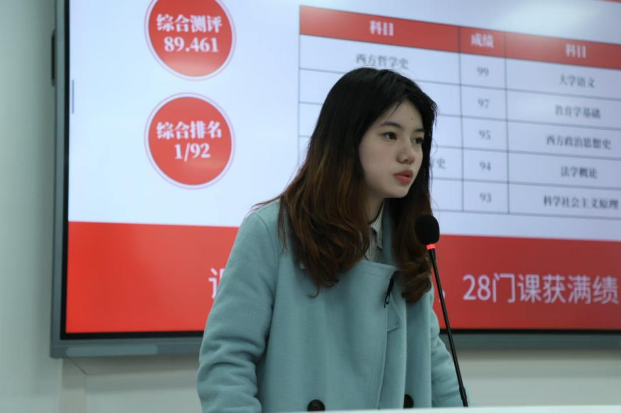 会上,邹妍从学习、思想、实践、生活等方面进行经验分享。她强调综合素养的重要性,鼓励同学们在重视学习的同时积极参与社会实践活动,将理论与实际相结合。她也分享了她在学校记者团和马院辩论队的经历与心得,鼓励24级同学加入学校组织,锻炼个人能力。此外,她还介绍了兼顾学业与各类活动的方法,为24级同学提供成长思路与经验。